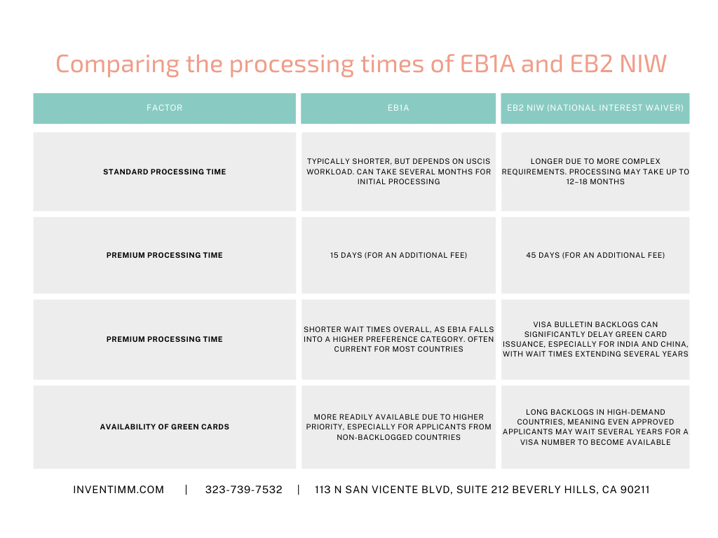 - Both categories now offer premium processing; however, EB1A has faster turnaround times compared to EB2 NIW.