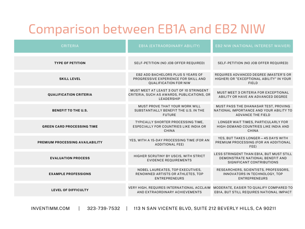EB1A vs. EB2 NIW: A Detailed Comparison to Help You Choose the Right Green Card Path