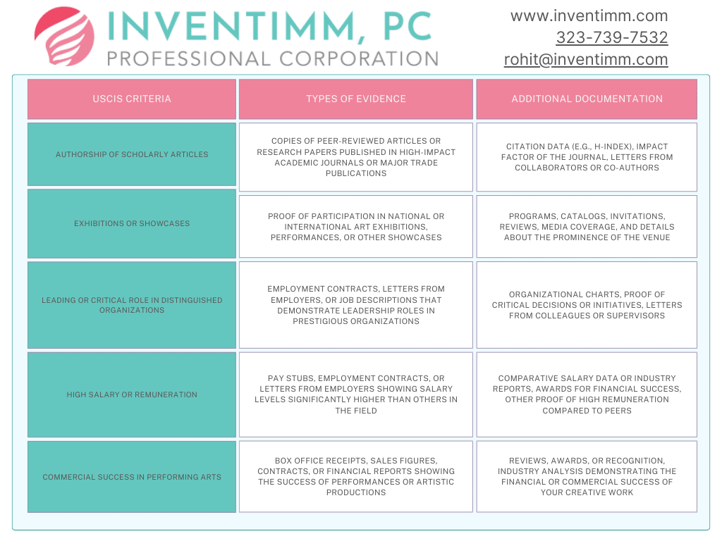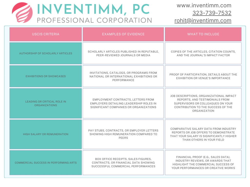 - Tailor Your Evidence: Customize your evidence to clearly reflect how it meets the specific USCIS criteria. Provide explanations that contextualize your achievements within your field.